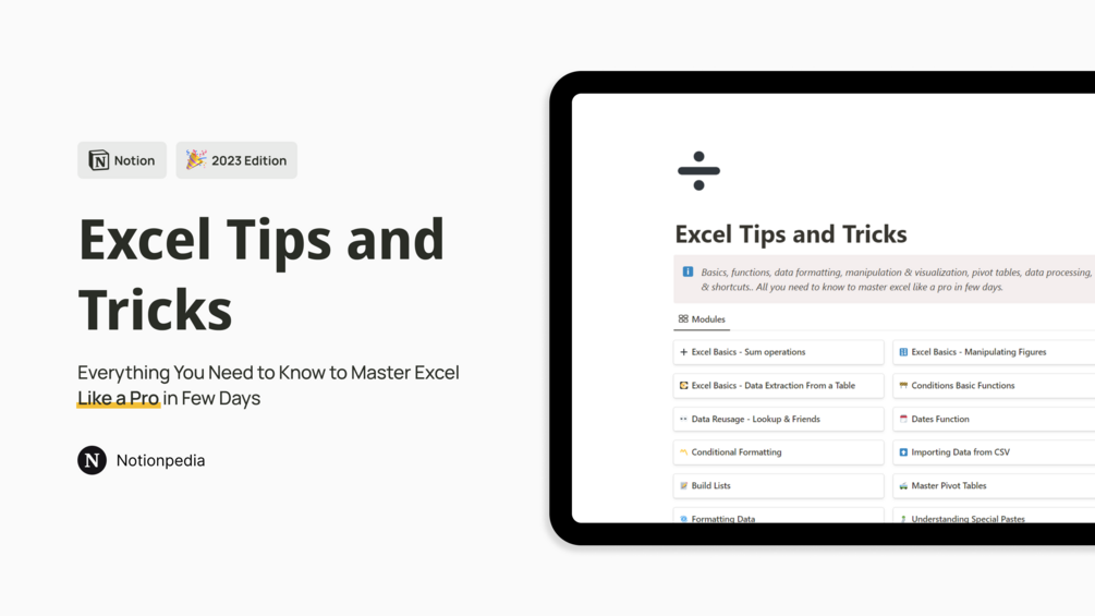 With our 20 curated modules, Excel Tips and Tricks gives you everything you need to be an Excel super-user at work