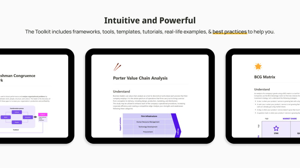 The toolkit is designed for business professionals, leaders, and strategists seeking to streamline their operations and gain insights from tried-and-tested strategic methods.
